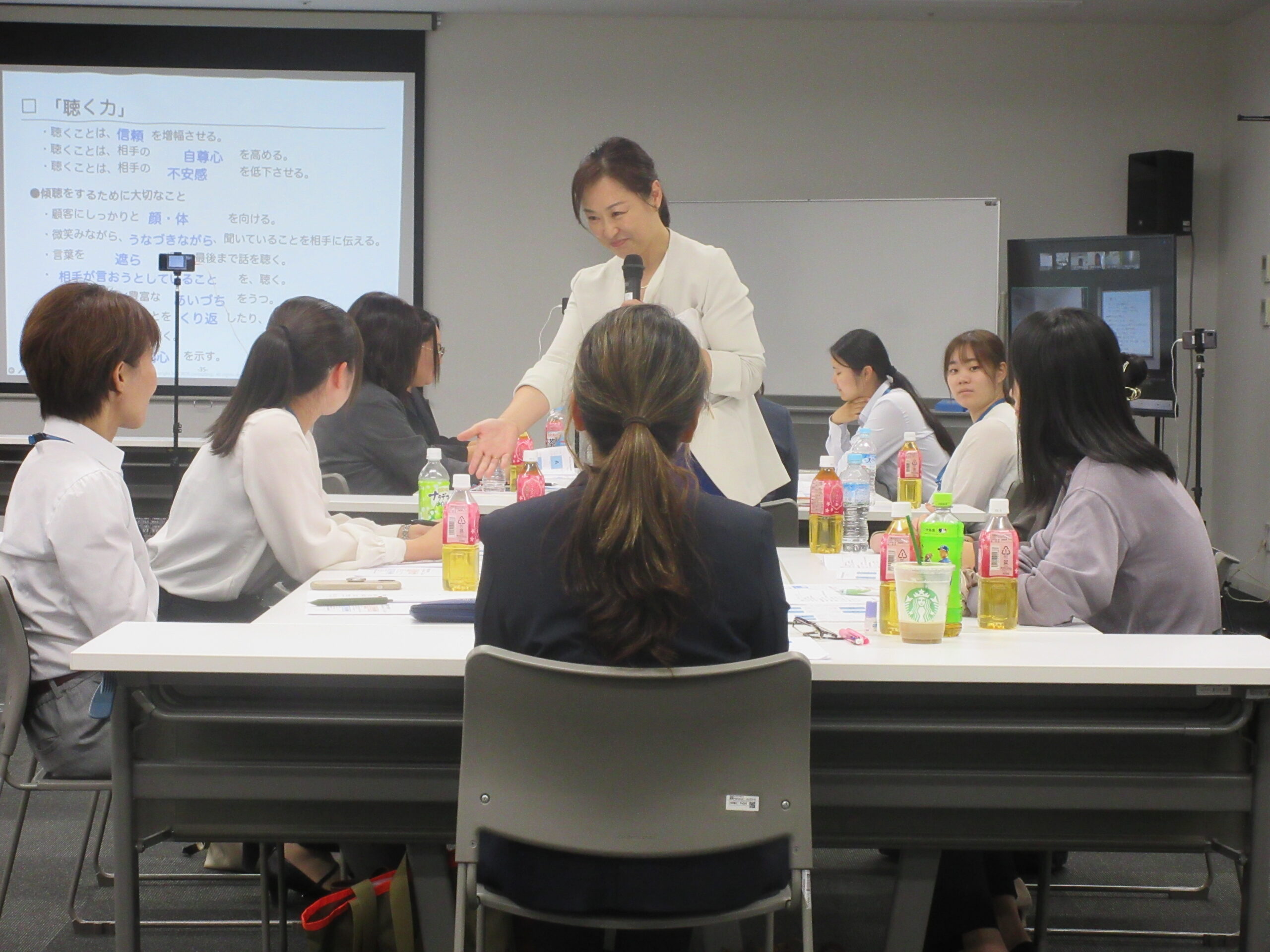 本研修では、島津愛先生を講師にお招きし、「自分らしく成果を出す!“パワー営業”キャリアアップ研修」と題したプログラムを実施。先生の講義に加えて活発なグループディスカッションが行われました。仕事に直結するスキルの学びだけでなく、参加者同士の気づきや経験の共有が進むことで、会場は笑顔と活気にあふれる時間となりました。
